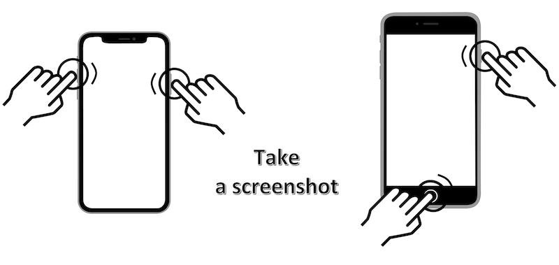 Gesture: press and hold the power side and the volume up buttons at the same time.