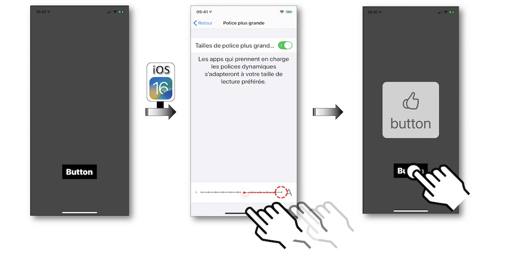 accessibilityTraitAdjustable : permet de définir un élément comme un élément « ajustable », c’est-à-dire un élément dont la valeur instantanée peut être modifiée via un geste spécifique de VoiceOver (balayage avec un doigt vers le haut ou le bas).