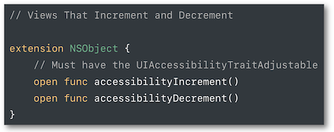 Dès que la vue est sélectionnée avec VoiceOver, un swipe vertical avec un doigt permet d'augmenter ou de diminuer la valeur.