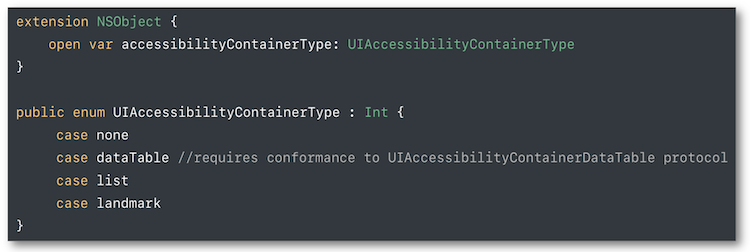 Une définition de conteneur typé au niveau accessibilité est disponible en iOS 11.