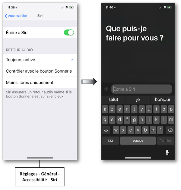 Nouveauté très utile pour les personnes ne pouvant pas utiliser SIRI vocalement ou désirant simplement effectuer des requêtes de façon discrète.