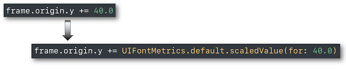 Introduite en iOS 11, la méthode scaledValue permet de déterminer la hauteur d'un élement graphique contenant du texte selon le grossissement implémenté.