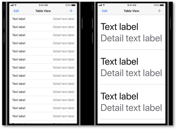 L'utilisation de table view cells standards va permettre d'adapter automatiquement la disposition d'une cellule en fonction du Dynamic Type grâce au cell-sizing.