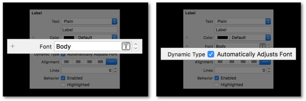 Dans l'Interface Builder de Xcode, il suffit d'indiquer le style souhaité dans la partie Attribute Inspector et de cocher la case Dynamic Type qui permettra d'adapter automatiquement la taille selon les réglages.