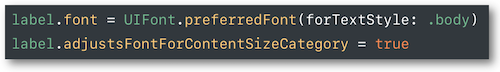 (aide ⟹ adjustsFontForContentSizeCategory (code) ou Automatically Adjusts Font (Attribute Inspector) + scaledFont si police personnalisée)